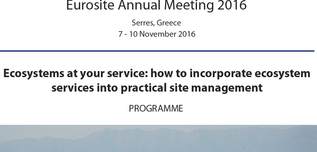 Η Κυνηγετική Ομοσπονδία Μακεδονίας – Θράκης με χαρά ανέλαβε να διοργανώσει την ετήσια συνάντηση του Eurosite στη χώρα μας, καθώς και το σεμινάριο για το πολύ επίκαιρο θέμα των υπηρεσιών και λειτουργιών που προσφέρουν τα οικοσυστήματα. Την Τρίτη 8/11 θα γίνει το σεμινάριο με θέμα "Ecosystems at your service: how to incorporate ecosystem services into practical site management". θα ακολουθήσουν ειδικές συναντήσεις για την προστασία των υγροτόπων και επιμέρους ζητήματα διαχείρισης.