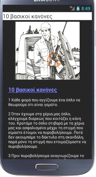 Κατεβάστε εντελώς δωρεάν και εγκαταστήστε στο κινητό σας τηλέφωνο την παρουσίαση των θηραμάτων, πτηνών και θηλαστικών, τους κυνηγετικούς σκύλους με φωτογραφίες καθώς και αναλυτική περιγραφή για το κάθε ένα. Επίσης, θα βρείτε χάρτες με τα καταφύγια άγρας ζωής της Μακεδονίας – Θράκης, όπως αυτά υπάρχουν στην ιστοσελίδα του YΠΑΠΕΝ. Ακόμη μπορείτε να διαβάσετε οδηγίες για την ασφάλεια στο κυνήγι, οδηγίες για την εξέταση υγείας του θηράματος, ενώ οι κυνηγετικοί σύλλογοι, οι κυνηγετικές ομοσπονδίες, καθώς και το έργο της ΚΟΜΑΘ είναι άλλες ενότητες που παρουσιάζονται.
