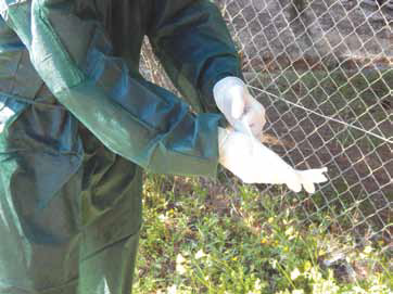 - Φόρεσε διπλά γάντια, μάσκα, προστατευτικά γυαλιά και ποδιά/φόρμα μιας χρήσης.