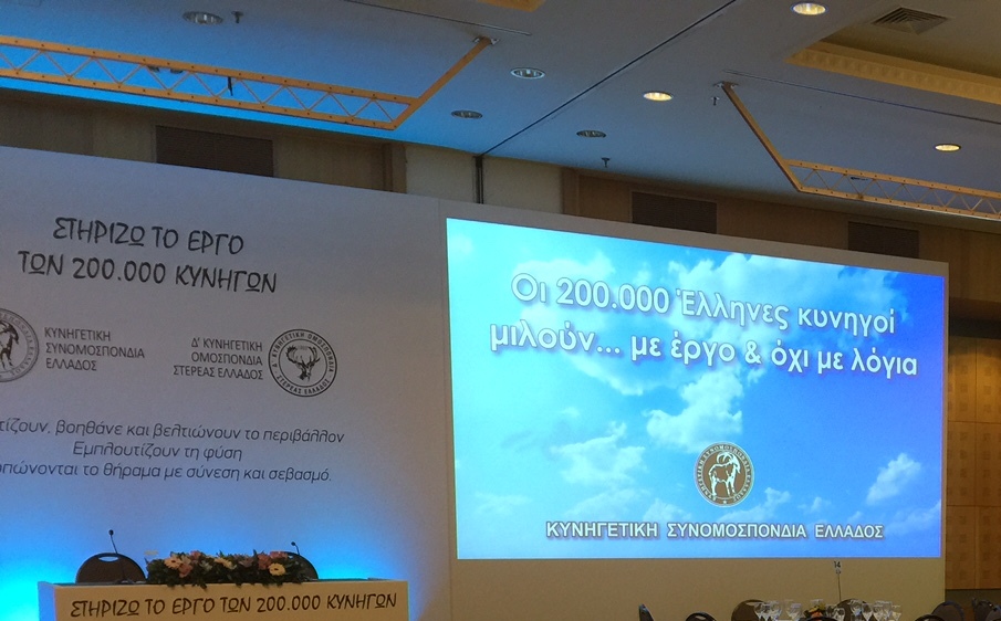 Μέλη της Κυβέρνησης, Βουλευτές, πρώην Υπουργοί, εκπρόσωποι της τοπικής Αυτοδιοίκησης, της Κεντρικής Δασικής Υπηρεσίας και άλλων φορέων, προσήλθαν στην εκδήλωση που έγινε στις 14-3-2017, σε κεντρικό ξενοδοχείο της Αθήνας, τιμώντας το έργο των 200.000 κυνηγών και των Κυνηγετικών Οργανώσεων.