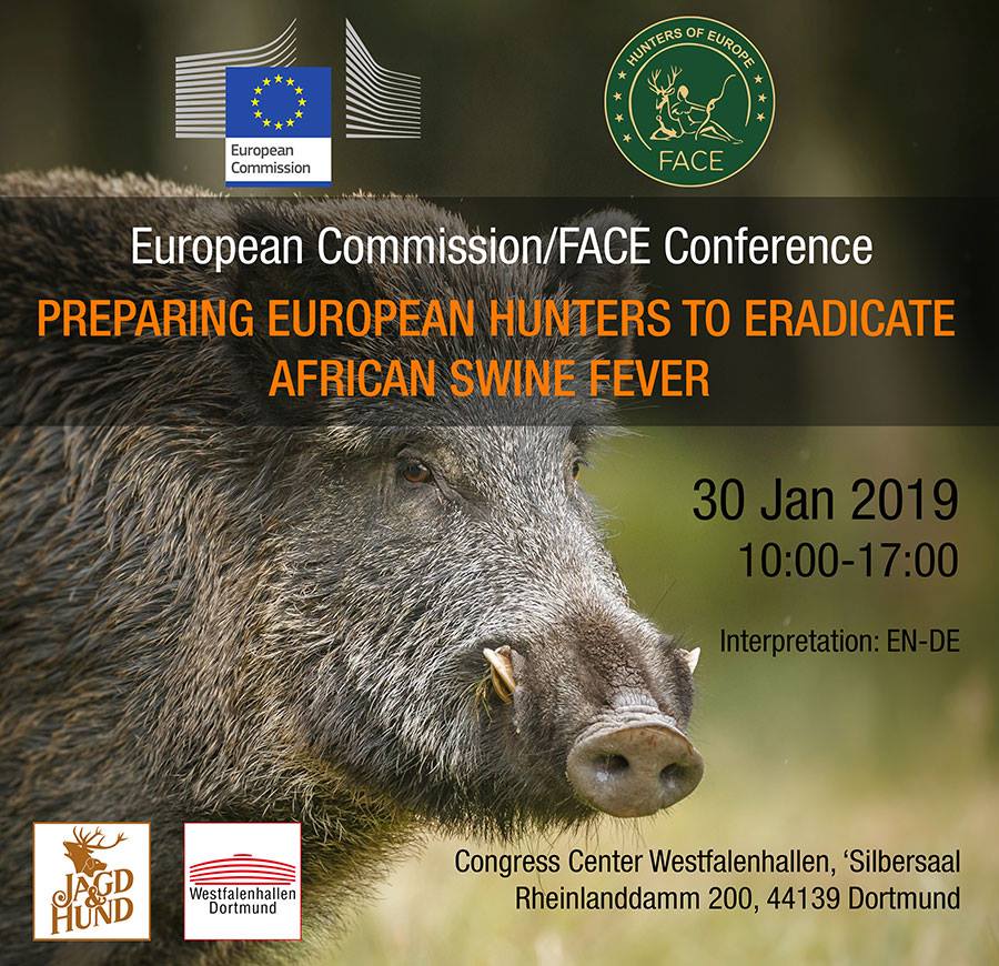 Η FACE, η Ευρωπαϊκή Κυνηγετική Ομοσπονδία συμμετέχει σε συνέδριο υψηλού επιπέδου με τίτλο "Προετοιμασία των Ευρωπαίων Κυνηγών για την Εξάλειψη της Αφρικανικής Πανώλης των Χοίρων", που διοργανώνεται από κοινού με την Ευρωπαϊκή Επιτροπή.