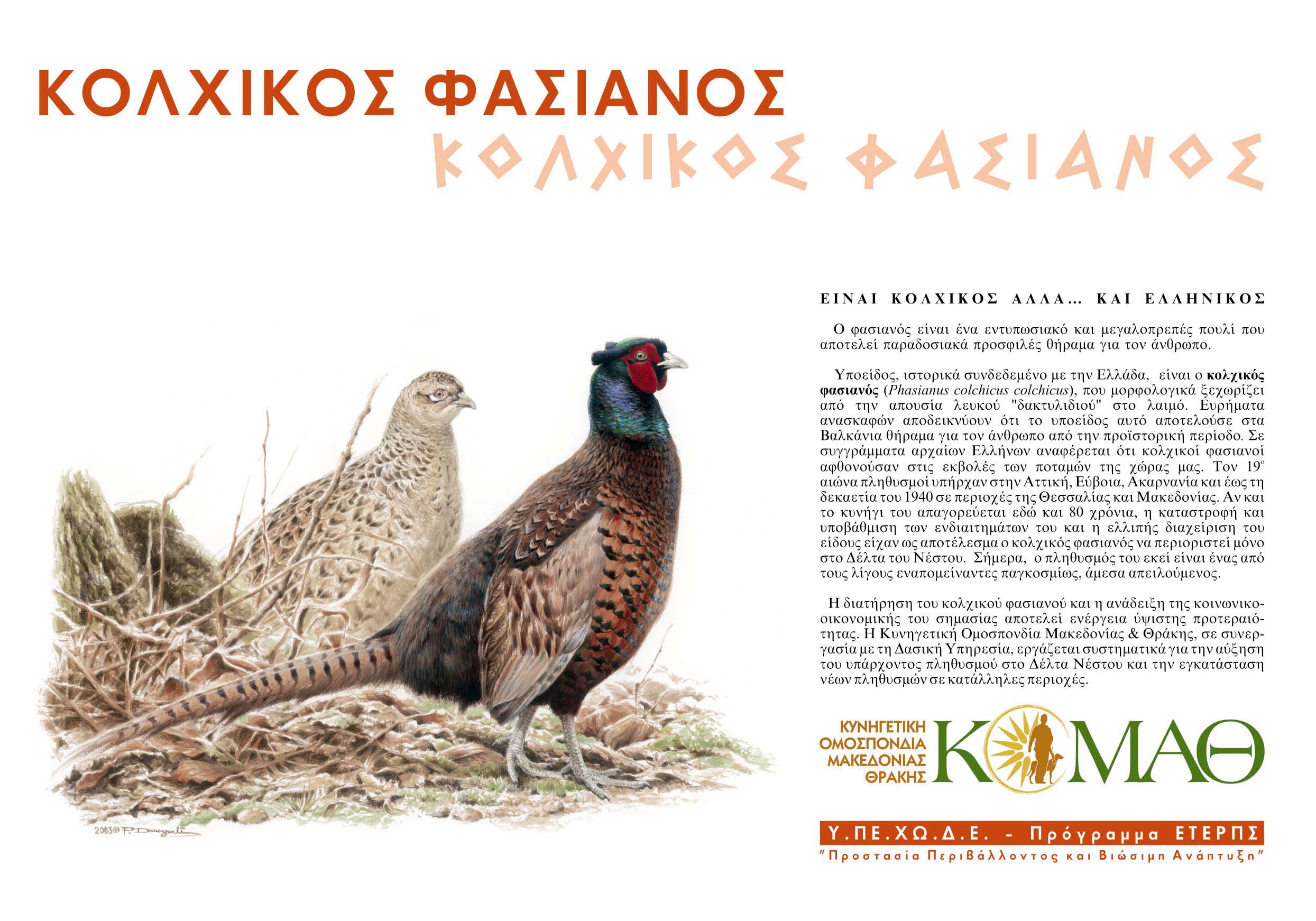 Συνεργασία της ΚΟΜΑΘ με τον Αγγλικό Οργανισμό Άγριας Πανίδας για την προστασία του κολχικού φασιανού.