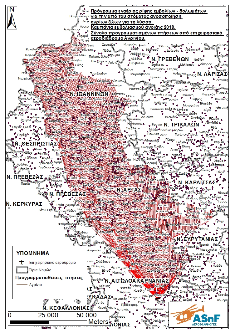 Πτήσεις ρίψης – διανομής εμβολίων-δολωμάτων κατά της λύσσας στις 08/05/2019 έως και 13/05/2019