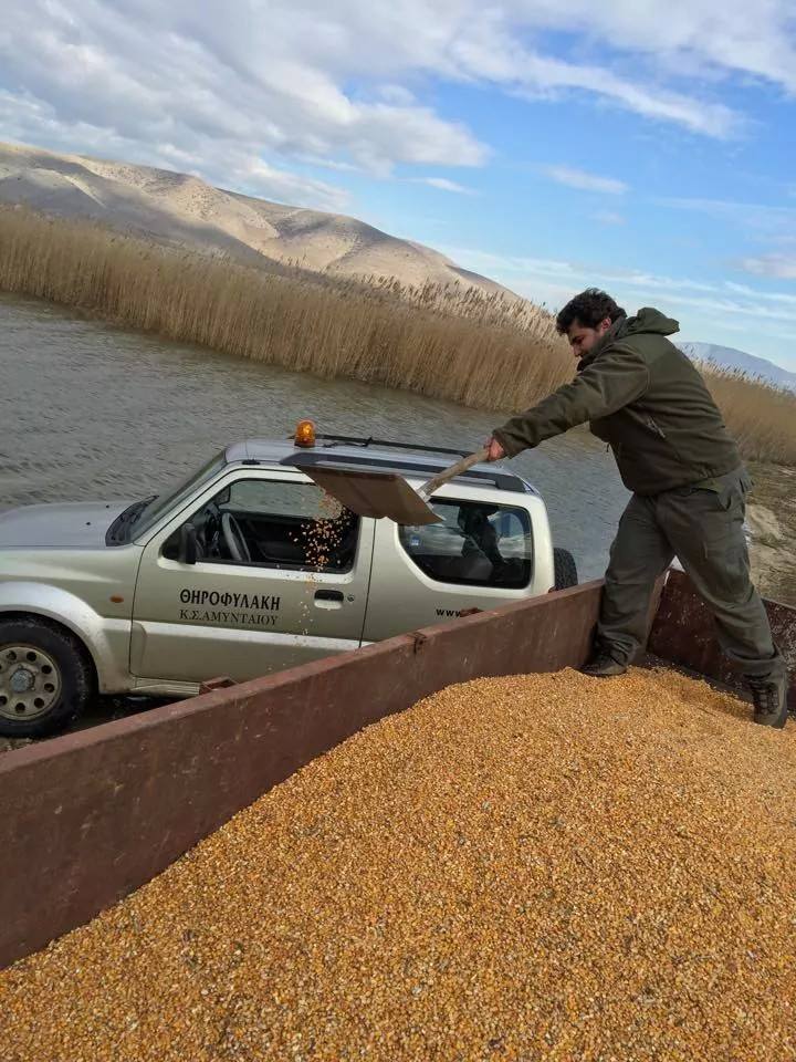 Η τροφή ρίχνεται σε περιοχές όπου κυρίως απαγορεύεται η θήρα.Οχήματα και γεωργικά μηχανήματα διέθεσε ο Κυνηγετικός Σύλλογος Αμυνταίου Φλώρινας